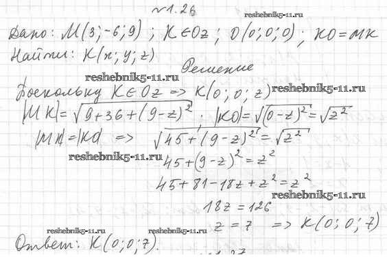 Готовая домашняя работа с ответами по Геометрии за 11 класс Мерзляк, Номировский, Поляков Учебник Алгоритм успеха Углубленный уровень Вентана-граф 2019 ФГОС - §1. Декартовы координаты точки в пространстве 1.26