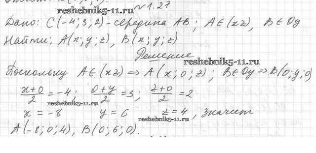 Готовая домашняя работа с ответами по Геометрии за 11 класс Мерзляк, Номировский, Поляков Учебник Алгоритм успеха Углубленный уровень Вентана-граф 2019 ФГОС - §1. Декартовы координаты точки в пространстве 1.27
