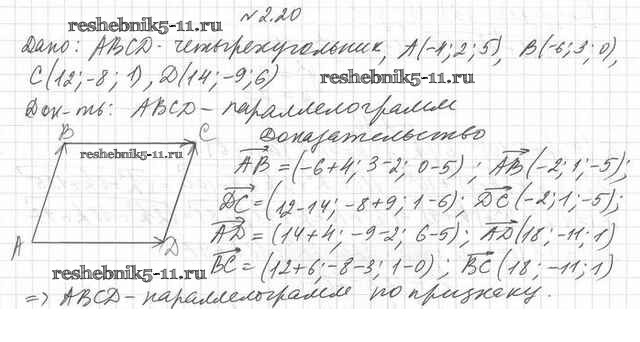 Готовая домашняя работа с ответами по Геометрии за 11 класс Мерзляк, Номировский, Поляков Учебник Алгоритм успеха Углубленный уровень Вентана-граф 2019 ФГОС - §2. Векторы в пространстве 2.20