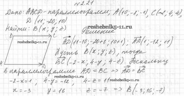 Готовая домашняя работа с ответами по Геометрии за 11 класс Мерзляк, Номировский, Поляков Учебник Алгоритм успеха Углубленный уровень Вентана-граф 2019 ФГОС - §2. Векторы в пространстве 2.21