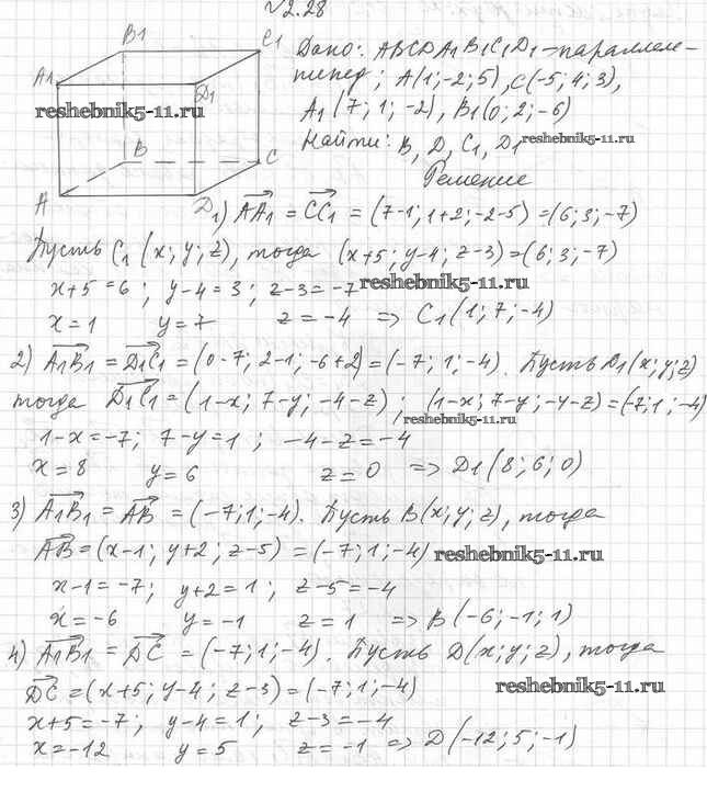 Готовая домашняя работа с ответами по Геометрии за 11 класс Мерзляк, Номировский, Поляков Учебник Алгоритм успеха Углубленный уровень Вентана-граф 2019 ФГОС - §2. Векторы в пространстве 2.28
