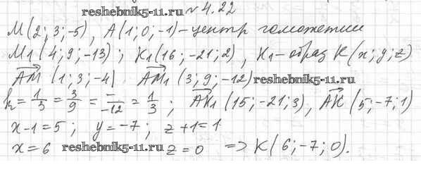 Готовая домашняя работа с ответами по Геометрии за 11 класс Мерзляк, Номировский, Поляков Учебник Алгоритм успеха Углубленный уровень Вентана-граф 2019 ФГОС - §4. Умножение вектора на число. Гомотетия 4.22