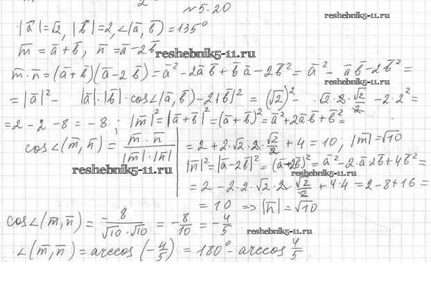 Готовая домашняя работа с ответами по Геометрии за 11 класс Мерзляк, Номировский, Поляков Учебник Алгоритм успеха Углубленный уровень Вентана-граф 2019 ФГОС - §5. Скалярное произведение векторов 5.20