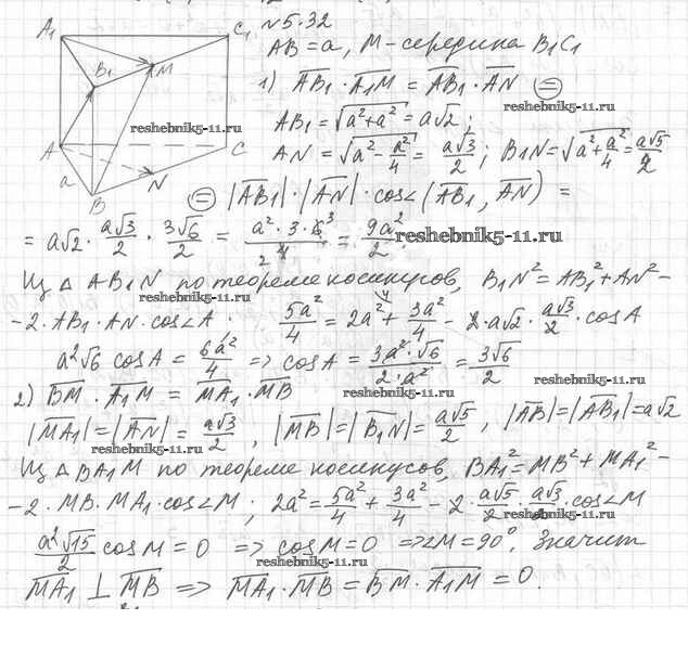 Готовая домашняя работа с ответами по Геометрии за 11 класс Мерзляк, Номировский, Поляков Учебник Алгоритм успеха Углубленный уровень Вентана-граф 2019 ФГОС - §5. Скалярное произведение векторов 5.32