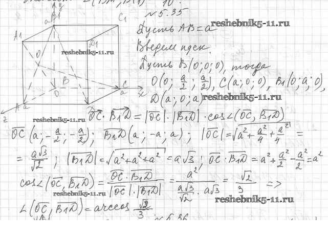Готовая домашняя работа с ответами по Геометрии за 11 класс Мерзляк, Номировский, Поляков Учебник Алгоритм успеха Углубленный уровень Вентана-граф 2019 ФГОС - §5. Скалярное произведение векторов 5.35