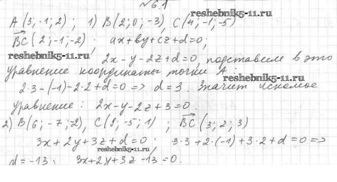 Готовая домашняя работа с ответами по Геометрии за 11 класс Мерзляк, Номировский, Поляков Учебник Алгоритм успеха Углубленный уровень Вентана-граф 2019 ФГОС - §6. Уравнение плоскости 6.1