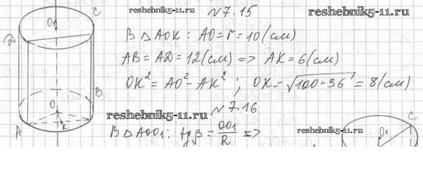 Готовая домашняя работа с ответами по Геометрии за 11 класс Мерзляк, Номировский, Поляков Учебник Алгоритм успеха Углубленный уровень Вентана-граф 2019 ФГОС - §7. Цилиндр 7.15