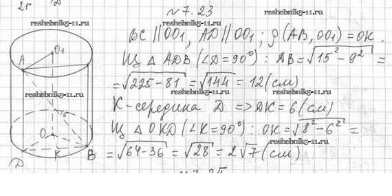 Готовая домашняя работа с ответами по Геометрии за 11 класс Мерзляк, Номировский, Поляков Учебник Алгоритм успеха Углубленный уровень Вентана-граф 2019 ФГОС - §7. Цилиндр 7.23