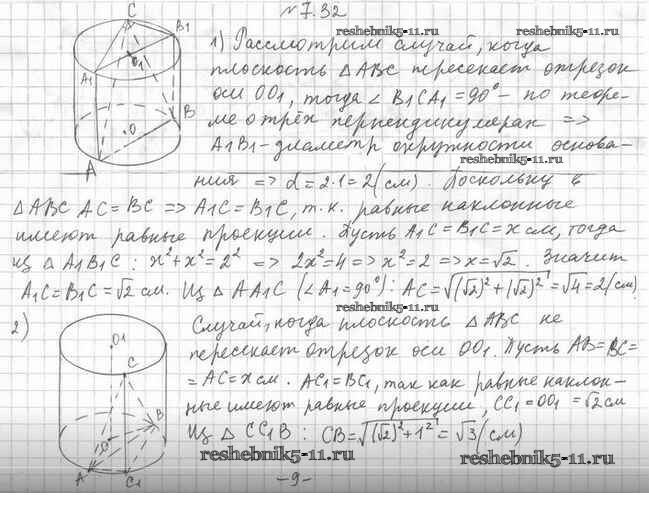 Готовая домашняя работа с ответами по Геометрии за 11 класс Мерзляк, Номировский, Поляков Учебник Алгоритм успеха Углубленный уровень Вентана-граф 2019 ФГОС - §7. Цилиндр 7.32