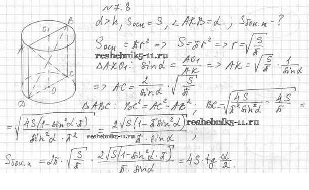 Готовая домашняя работа с ответами по Геометрии за 11 класс Мерзляк, Номировский, Поляков Учебник Алгоритм успеха Углубленный уровень Вентана-граф 2019 ФГОС - §7. Цилиндр 7.8