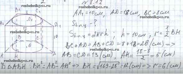 Готовая домашняя работа с ответами по Геометрии за 11 класс Мерзляк, Номировский, Поляков Учебник Алгоритм успеха Углубленный уровень Вентана-граф 2019 ФГОС - §8. Комбинации цилиндра и призмы 8.12