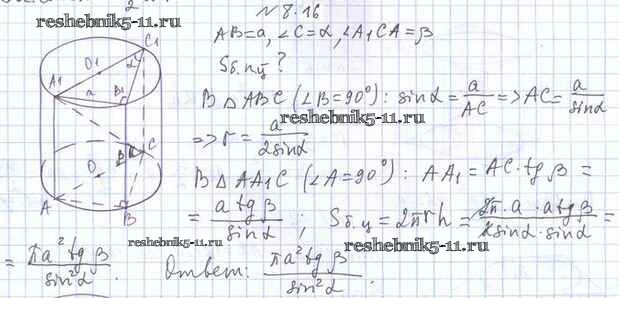 Готовая домашняя работа с ответами по Геометрии за 11 класс Мерзляк, Номировский, Поляков Учебник Алгоритм успеха Углубленный уровень Вентана-граф 2019 ФГОС - §8. Комбинации цилиндра и призмы 8.16