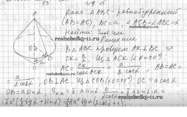 Готовая домашняя работа с ответами по Геометрии за 11 класс Мерзляк, Номировский, Поляков Учебник Алгоритм успеха Углубленный уровень Вентана-граф 2019 ФГОС - §9. Конус 9.15