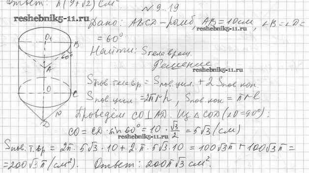 Готовая домашняя работа с ответами по Геометрии за 11 класс Мерзляк, Номировский, Поляков Учебник Алгоритм успеха Углубленный уровень Вентана-граф 2019 ФГОС - §9. Конус 9.19