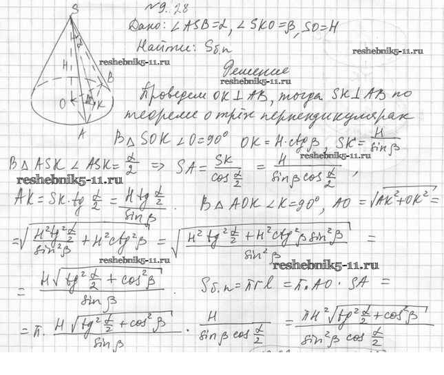 Готовая домашняя работа с ответами по Геометрии за 11 класс Мерзляк, Номировский, Поляков Учебник Алгоритм успеха Углубленный уровень Вентана-граф 2019 ФГОС - §9. Конус 9.28