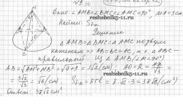 Готовая домашняя работа с ответами по Геометрии за 11 класс Мерзляк, Номировский, Поляков Учебник Алгоритм успеха Углубленный уровень Вентана-граф 2019 ФГОС - §9. Конус 9.30
