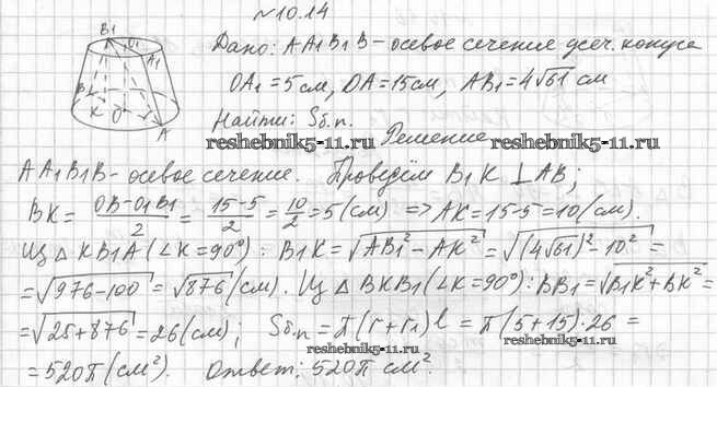 Готовая домашняя работа с ответами по Геометрии за 11 класс Мерзляк, Номировский, Поляков Учебник Алгоритм успеха Углубленный уровень Вентана-граф 2019 ФГОС - §10. Усечённый конус 10.14