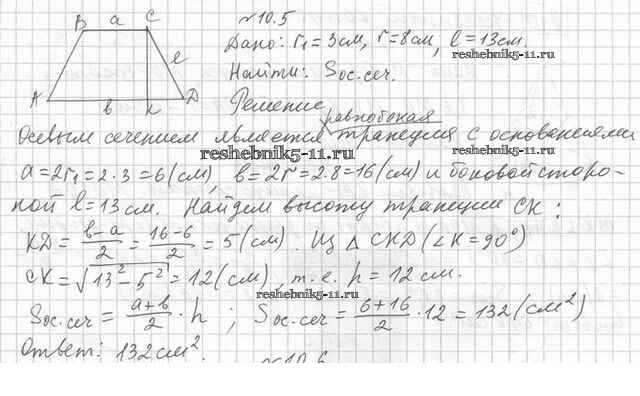 Готовая домашняя работа с ответами по Геометрии за 11 класс Мерзляк, Номировский, Поляков Учебник Алгоритм успеха Углубленный уровень Вентана-граф 2019 ФГОС - §10. Усечённый конус 10.5