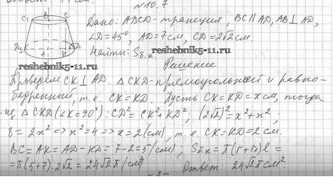 Готовая домашняя работа с ответами по Геометрии за 11 класс Мерзляк, Номировский, Поляков Учебник Алгоритм успеха Углубленный уровень Вентана-граф 2019 ФГОС - §10. Усечённый конус 10.7