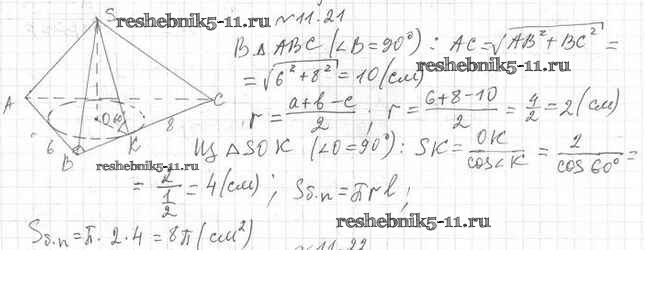 Готовая домашняя работа с ответами по Геометрии за 11 класс Мерзляк, Номировский, Поляков Учебник Алгоритм успеха Углубленный уровень Вентана-граф 2019 ФГОС - §11. Комбинации конуса и пирамиды 11.21