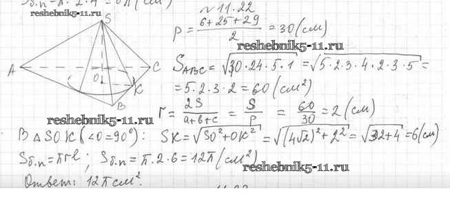 Готовая домашняя работа с ответами по Геометрии за 11 класс Мерзляк, Номировский, Поляков Учебник Алгоритм успеха Углубленный уровень Вентана-граф 2019 ФГОС - §11. Комбинации конуса и пирамиды 11.22