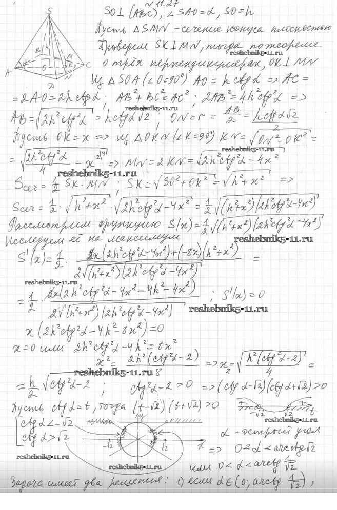 Готовая домашняя работа с ответами по Геометрии за 11 класс Мерзляк, Номировский, Поляков Учебник Алгоритм успеха Углубленный уровень Вентана-граф 2019 ФГОС - §11. Комбинации конуса и пирамиды 11.27
