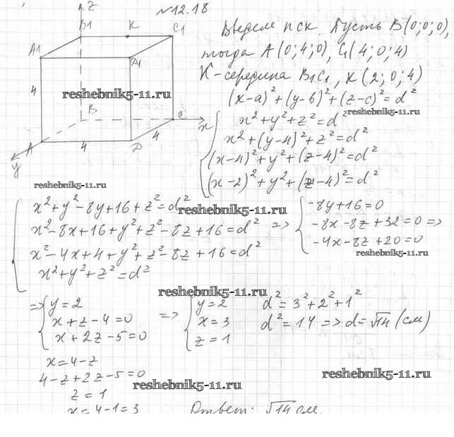 Готовая домашняя работа с ответами по Геометрии за 11 класс Мерзляк, Номировский, Поляков Учебник Алгоритм успеха Углубленный уровень Вентана-граф 2019 ФГОС - §12. Сфера и шар. Уравнение сферы 12.18