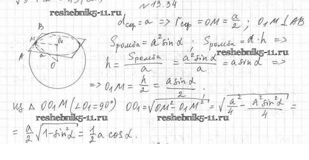 Готовая домашняя работа с ответами по Геометрии за 11 класс Мерзляк, Номировский, Поляков Учебник Алгоритм успеха Углубленный уровень Вентана-граф 2019 ФГОС - §13. Взаимное расположение сферы и плоскости 13.34