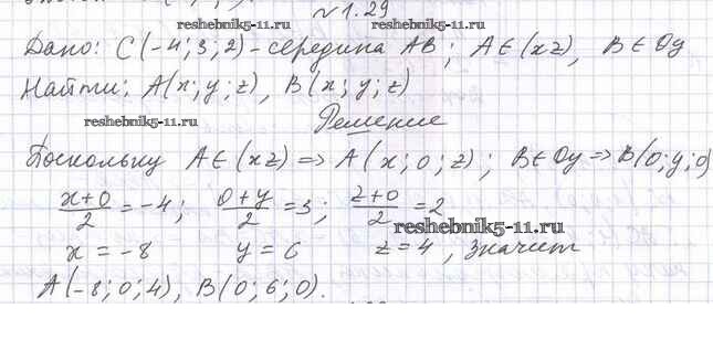 Готовая домашняя работа с ответами по Геометрии за 11 класс Мерзляк, Номировский, Полонский, Якир Учебник Алгоритм успеха Базовый уровень Вентана-граф 2019 ФГОС - §1. Декартовы координаты точки в пространстве 1.29