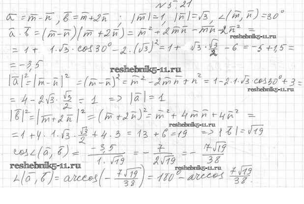 Готовая домашняя работа с ответами по Геометрии за 11 класс Мерзляк, Номировский, Полонский, Якир Учебник Алгоритм успеха Базовый уровень Вентана-граф 2019 ФГОС - §5. Скалярное произведение векторов 5.21