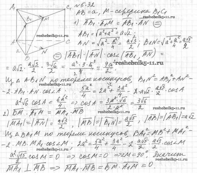 Готовая домашняя работа с ответами по Геометрии за 11 класс Мерзляк, Номировский, Полонский, Якир Учебник Алгоритм успеха Базовый уровень Вентана-граф 2019 ФГОС - §5. Скалярное произведение векторов 5.32
