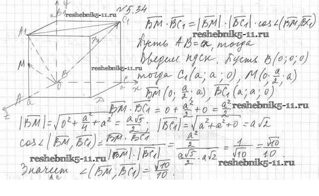 Готовая домашняя работа с ответами по Геометрии за 11 класс Мерзляк, Номировский, Полонский, Якир Учебник Алгоритм успеха Базовый уровень Вентана-граф 2019 ФГОС - §5. Скалярное произведение векторов 5.34