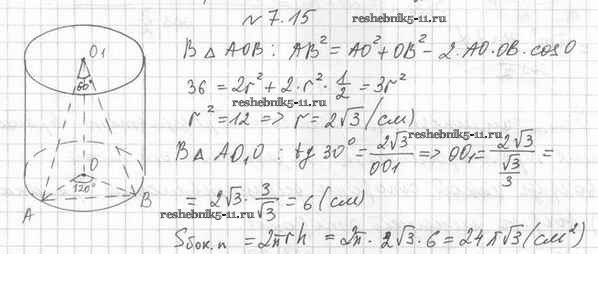 Готовая домашняя работа с ответами по Геометрии за 11 класс Мерзляк, Номировский, Полонский, Якир Учебник Алгоритм успеха Базовый уровень Вентана-граф 2019 ФГОС - §7. Цилиндр 7.15
