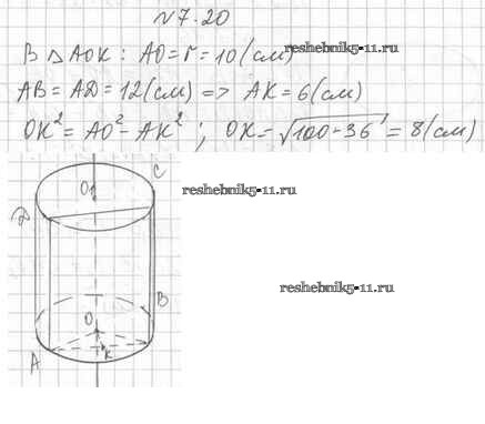 Готовая домашняя работа с ответами по Геометрии за 11 класс Мерзляк, Номировский, Полонский, Якир Учебник Алгоритм успеха Базовый уровень Вентана-граф 2019 ФГОС - §7. Цилиндр 7.20