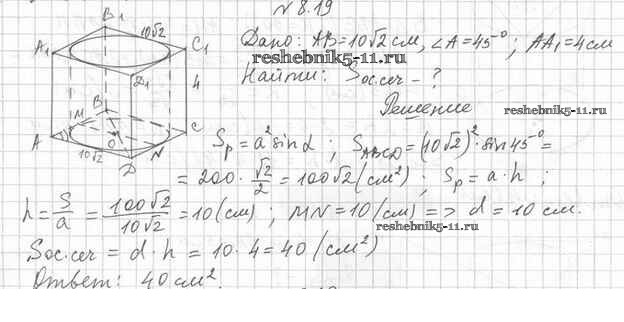 Готовая домашняя работа с ответами по Геометрии за 11 класс Мерзляк, Номировский, Полонский, Якир Учебник Алгоритм успеха Базовый уровень Вентана-граф 2019 ФГОС - §8. Комбинации цилиндра и призмы 8.19