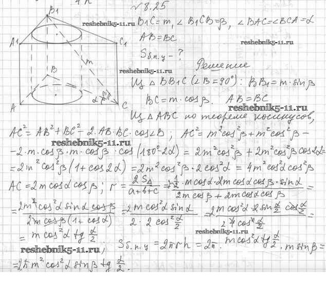 Готовая домашняя работа с ответами по Геометрии за 11 класс Мерзляк, Номировский, Полонский, Якир Учебник Алгоритм успеха Базовый уровень Вентана-граф 2019 ФГОС - §8. Комбинации цилиндра и призмы 8.25