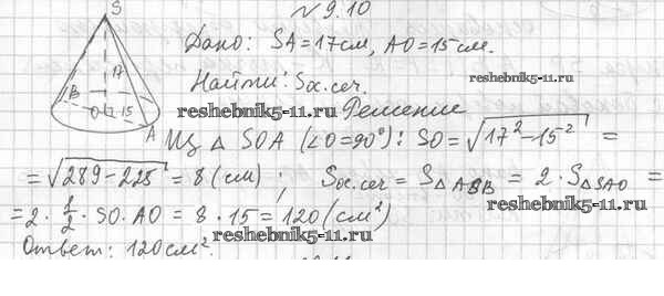 Готовая домашняя работа с ответами по Геометрии за 11 класс Мерзляк, Номировский, Полонский, Якир Учебник Алгоритм успеха Базовый уровень Вентана-граф 2019 ФГОС - §9. Конус 9.10