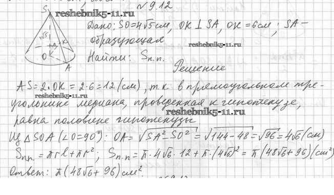 Готовая домашняя работа с ответами по Геометрии за 11 класс Мерзляк, Номировский, Полонский, Якир Учебник Алгоритм успеха Базовый уровень Вентана-граф 2019 ФГОС - §9. Конус 9.12