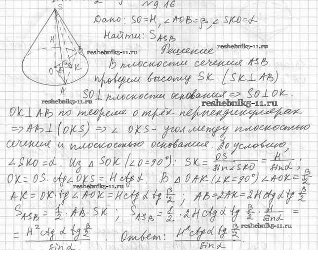 Готовая домашняя работа с ответами по Геометрии за 11 класс Мерзляк, Номировский, Полонский, Якир Учебник Алгоритм успеха Базовый уровень Вентана-граф 2019 ФГОС - §9. Конус 9.16