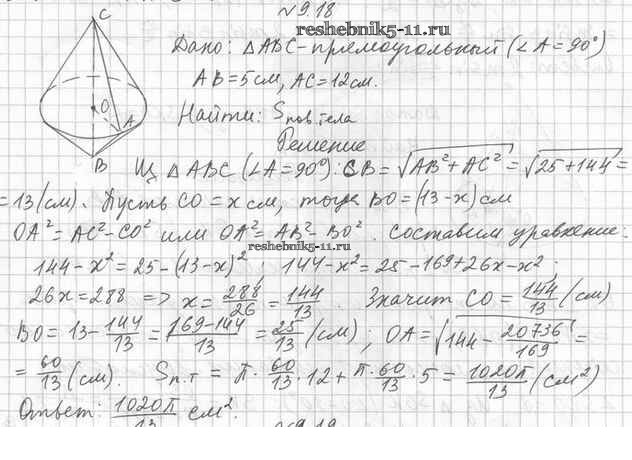 Готовая домашняя работа с ответами по Геометрии за 11 класс Мерзляк, Номировский, Полонский, Якир Учебник Алгоритм успеха Базовый уровень Вентана-граф 2019 ФГОС - §9. Конус 9.18