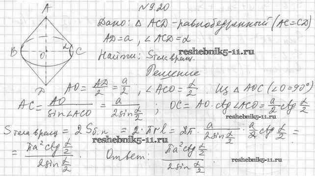 Готовая домашняя работа с ответами по Геометрии за 11 класс Мерзляк, Номировский, Полонский, Якир Учебник Алгоритм успеха Базовый уровень Вентана-граф 2019 ФГОС - §9. Конус 9.20