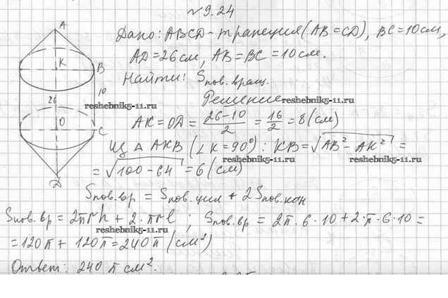 Готовая домашняя работа с ответами по Геометрии за 11 класс Мерзляк, Номировский, Полонский, Якир Учебник Алгоритм успеха Базовый уровень Вентана-граф 2019 ФГОС - §9. Конус 9.24