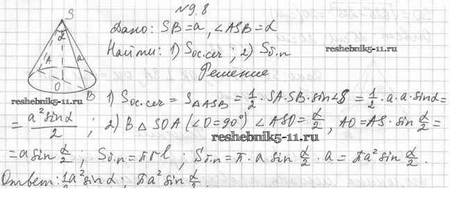 Готовая домашняя работа с ответами по Геометрии за 11 класс Мерзляк, Номировский, Полонский, Якир Учебник Алгоритм успеха Базовый уровень Вентана-граф 2019 ФГОС - §9. Конус 9.8