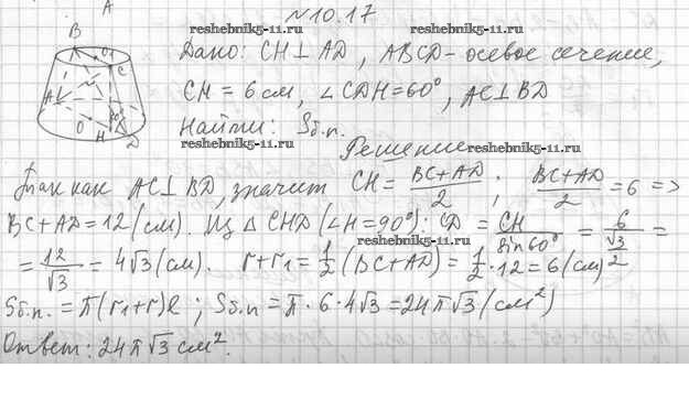 Готовая домашняя работа с ответами по Геометрии за 11 класс Мерзляк, Номировский, Полонский, Якир Учебник Алгоритм успеха Базовый уровень Вентана-граф 2019 ФГОС - §10. Усечённый конус 10.17