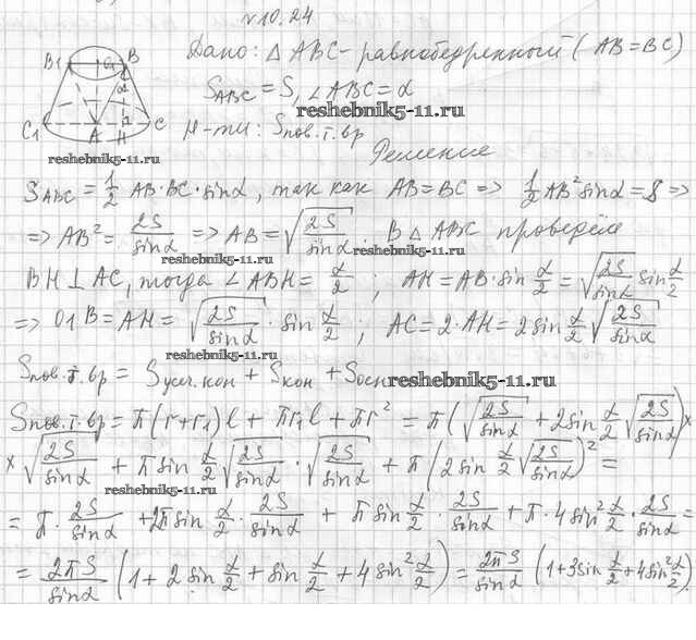 Готовая домашняя работа с ответами по Геометрии за 11 класс Мерзляк, Номировский, Полонский, Якир Учебник Алгоритм успеха Базовый уровень Вентана-граф 2019 ФГОС - §10. Усечённый конус 10.24