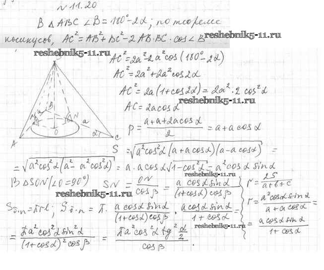 Готовая домашняя работа с ответами по Геометрии за 11 класс Мерзляк, Номировский, Полонский, Якир Учебник Алгоритм успеха Базовый уровень Вентана-граф 2019 ФГОС - §11. Комбинации конуса и пирамиды 11.20