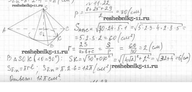 Готовая домашняя работа с ответами по Геометрии за 11 класс Мерзляк, Номировский, Полонский, Якир Учебник Алгоритм успеха Базовый уровень Вентана-граф 2019 ФГОС - §11. Комбинации конуса и пирамиды 11.22