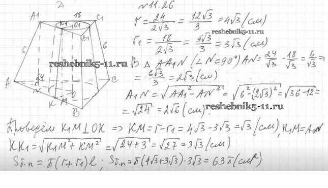 Готовая домашняя работа с ответами по Геометрии за 11 класс Мерзляк, Номировский, Полонский, Якир Учебник Алгоритм успеха Базовый уровень Вентана-граф 2019 ФГОС - §11. Комбинации конуса и пирамиды 11.26