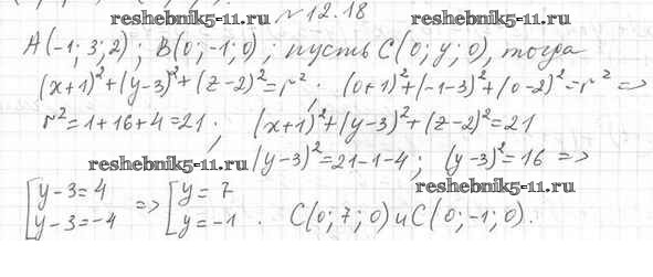 Готовая домашняя работа с ответами по Геометрии за 11 класс Мерзляк, Номировский, Полонский, Якир Учебник Алгоритм успеха Базовый уровень Вентана-граф 2019 ФГОС - §12. Сфера и шар. Уравнение сферы 12.18