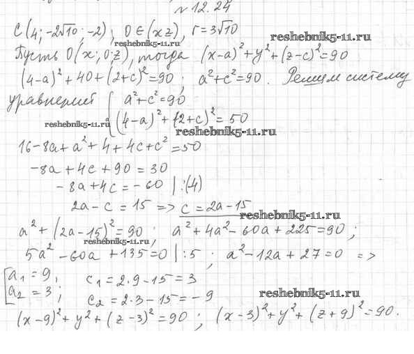 Готовая домашняя работа с ответами по Геометрии за 11 класс Мерзляк, Номировский, Полонский, Якир Учебник Алгоритм успеха Базовый уровень Вентана-граф 2019 ФГОС - §12. Сфера и шар. Уравнение сферы 12.24